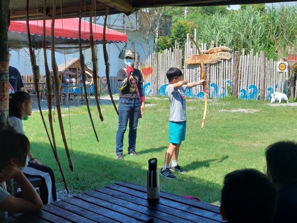 撒央·安南老師分享,這次活動帶領小朋友前往壽豐鄉吉籟獵人學校,學習編織頭帶及手環、搗米製作杜侖及體驗射箭,更前往豐濱鄉靜浦部落進行深度導覽,觀摩頭目祈福的祭儀文化、運用漁網體驗傳統捕魚等,希望讓原住民小朋友透過「五感」體驗,更加了解過去阿美族傳統智慧及尊重自然的生活態度,進而認識部落在地故事及歷史背景。