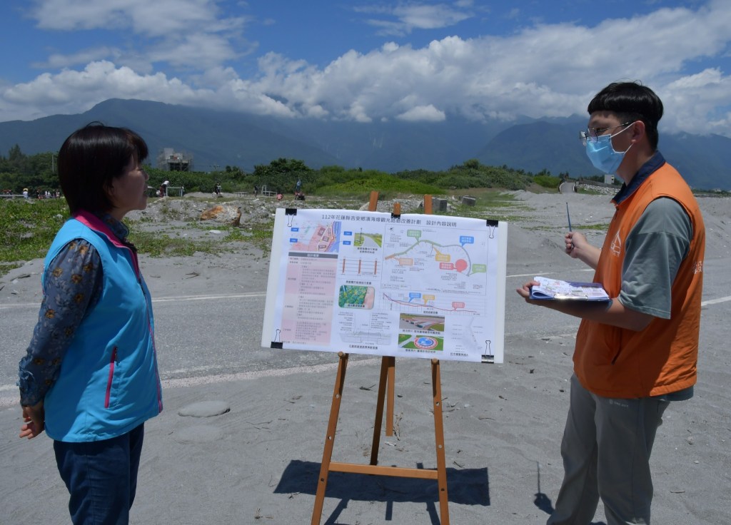 吉安鄉公所執行「濱海線觀光路廊改善計畫」,將提升花蓮溪出海口段兩潭自行車道、洄瀾廣場鋪面與周邊設施,同時新增周邊道路的觀光導覽和指引設施,進行整體景觀塑造;特別是化仁海堤南端自行車道下坡後銜接柏油路面,因氣候環境影響常導致大量沙石堆積,更因掩蓋砂石清理作業不易,恐隱藏民眾騎乘自行車行經該處之危險,鄉長游淑貞今(15)日特地會同建設課長吳印浴、文觀所長危正儀及設計監造單位相關人員現勘,務求竣工後確實保障運動觀光安全使用,達成帶狀路廊完善設施,以開啟在地共融適性生活的安全網。