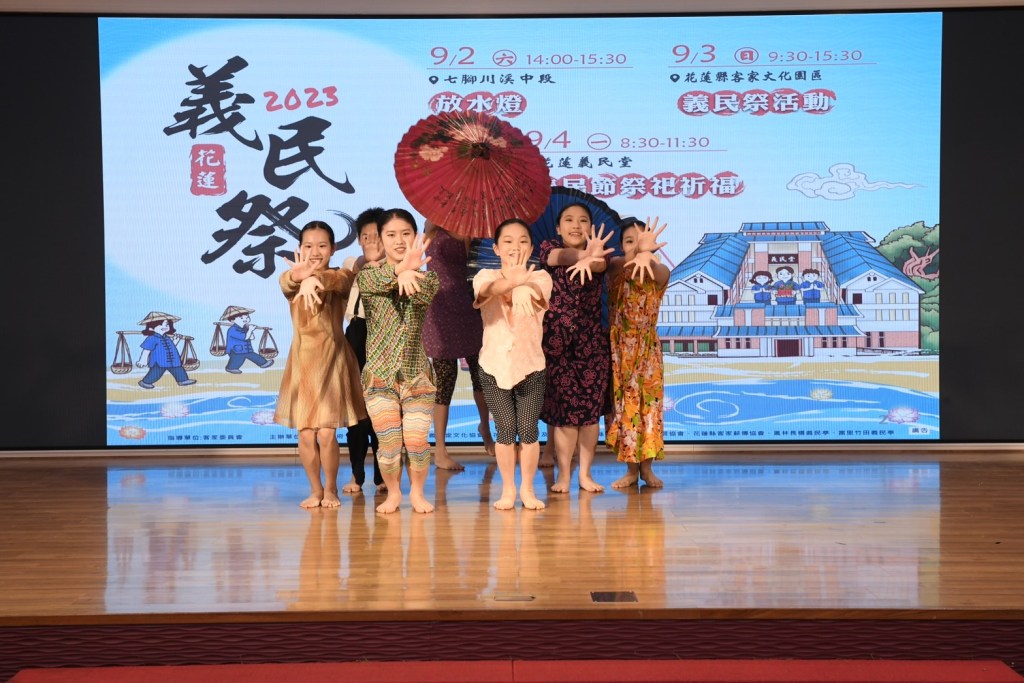 今日記者會由花蓮縣客屬會新城分會合唱團開場演唱客家歌謠,接著由奪下 111年客家藝文競賽口說藝術全國賽冠軍的鳳林國小附幼小朋友彭靖元及陳李彥誼表演口說藝術,小小年紀搭配一口流利的客語,贏得滿堂彩!接續由化仁國中同學動感的舞蹈表演,瞬間炒熱現場的氣氛。