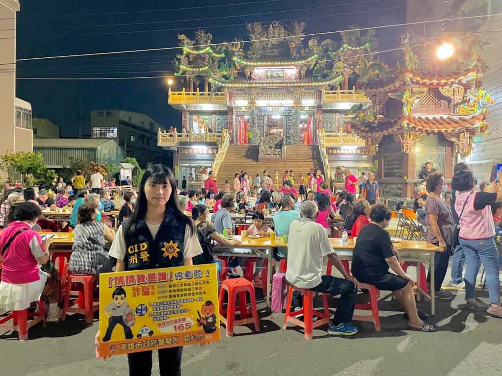 若在網路上接觸陌生人士,對方自稱是「戰地軍官」、「無國界醫生」等,尚未謀面便要求幫忙「支付關稅」、「購買機票」等,民眾即應提高警覺,小心落入詐騙陷阱!為此,岡山警分局結合當地里長,在中秋節聯歡活動中介紹詐騙集團常用的話術及手法,並利用各式口訣與有獎徵答之互動,讓民眾對宣導內容印象更加深刻。