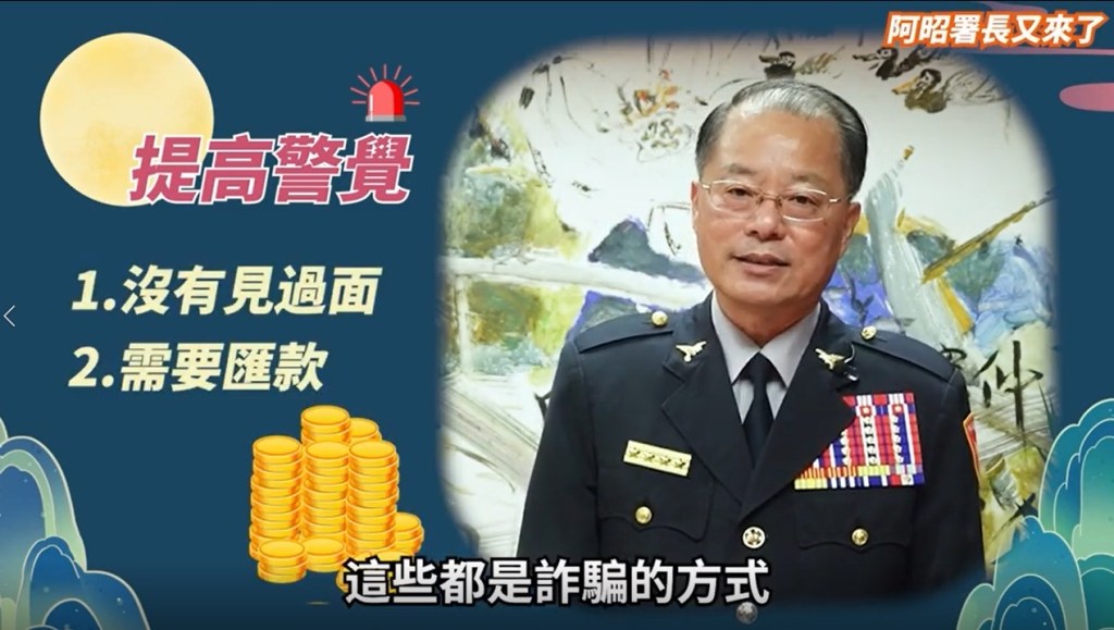 此次,「阿昭署長」拍攝影片的目的,就是為了提升民眾的防詐意識,降低被騙風險;如接獲任何可疑電話或訊息,打165反詐騙諮詢專線就對了!記住「見面再談、匯錢免談」之黃金原則!