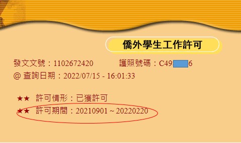 - 工作許可函是否還在有效期間內
