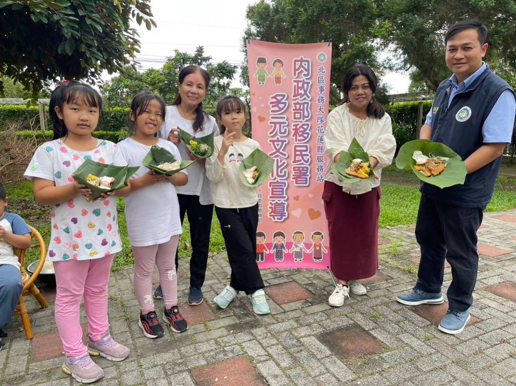 花蓮縣服務站胡朝仁主任表示,謝謝印尼共學團為這次活動特地準備香蕉葉及柚木葉,供大家包裹飯菜,讓飯菜香氣層次再昇華,讓大家不出國也能品嘗道地印尼風味菜餚。另外,也藉英雄日的機會,向在崗位克盡職責,為臺灣社會經濟發展貢獻一己之力的移工、新住民及新住民團體等致謝,感謝各路英雄們的辛勞付出! 另移民署提醒「第10屆新住民及其子女築夢計畫」,將於112年11月20日截止報名,歡迎符合資格者把握機會踴躍報名。