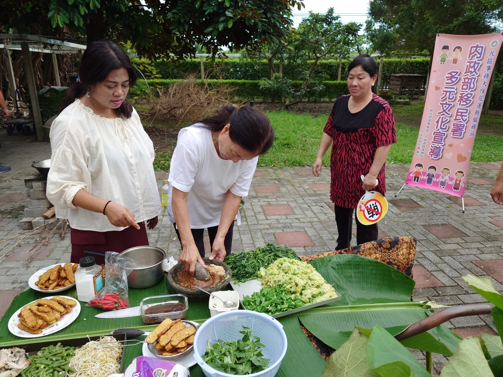 到今(112)年9月止約75萬名移工在臺工作,另以國人配偶名義來臺的新住民人數亦達58萬餘人,使我國社會文化更趨豐富及多元。移民署北區事務大隊花蓮縣服務站日前與印尼共學團合作,特舉辦多元文化宣導-「歡慶印尼英雄日 天貝傳統菜餚DIY」活動,由共學團召集人張美君女士及團長許羅熙娣女士指導社區居民、新住民及其家庭,循古法製作印尼東爪哇傳統美食柚木葉包"佩塞爾Pecel"飯。