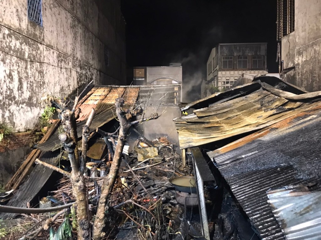 現場為一層木造鐵皮住宅,警消到達現場時火勢已全面燃燒,立刻佈水線5線進行攻擊與防護,火勢約在30分鐘控制,無人員傷亡,火災發生原因尚待調查。