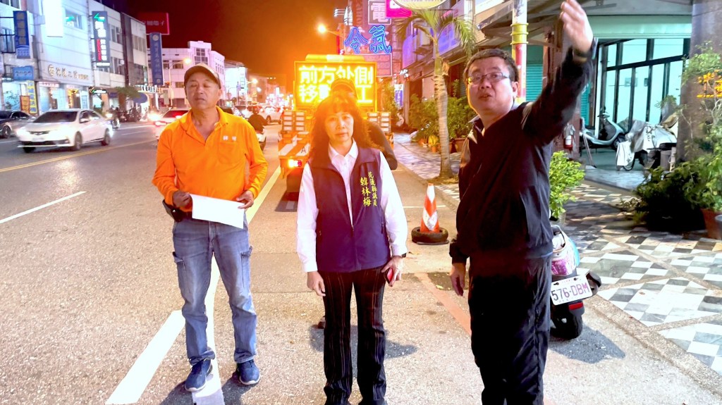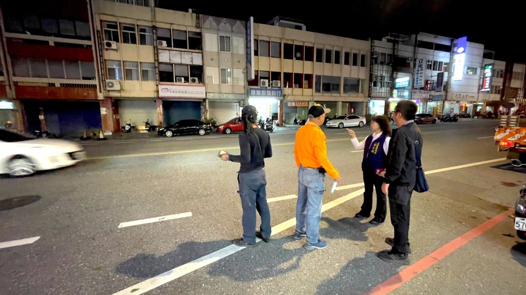 韓林梅議員表示,會勘時是傍晚五點多,為下班巔峰時間,車水馬龍,馬路上已呈現昏暗的狀態,路邊店家打烊休息後,路上完全變成黑鴉鴉,除了汽車的燈光外,機車或行人走在路上都會覺得視線不明。