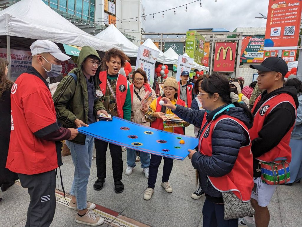在年終感恩園遊會中,縣政府衛生局反毒防制中心在花蓮遠東百貨舉辦了宣導反毒的闖關遊戲,力邀大漢企管系提供豐富的桌遊,為活動增添了不少趣味性。花蓮高商學務主任呂善成及教官帶領花商學生與民眾互動,透過桌遊帶動現場氣氛,為活動注入歡樂元素。