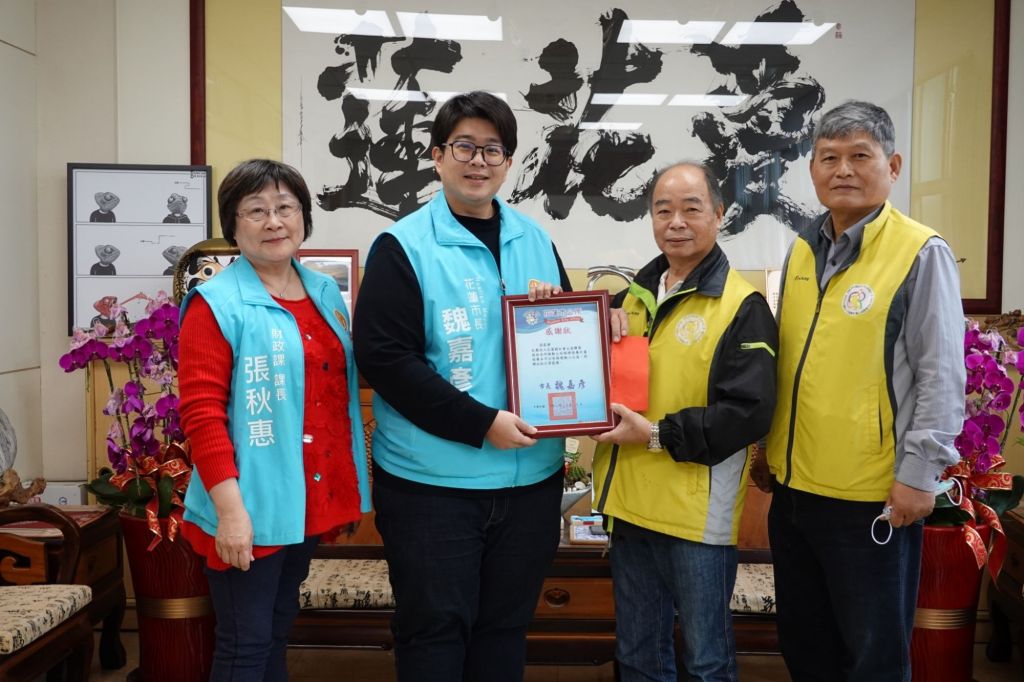 社團法人花蓮縣社會公益聯盟捐贈5萬元作為認養路燈使用。魏嘉彥市長感謝花蓮縣公益聯盟協助減輕市公所的財政負擔,奉獻愛心也照亮花蓮市區的各角落。