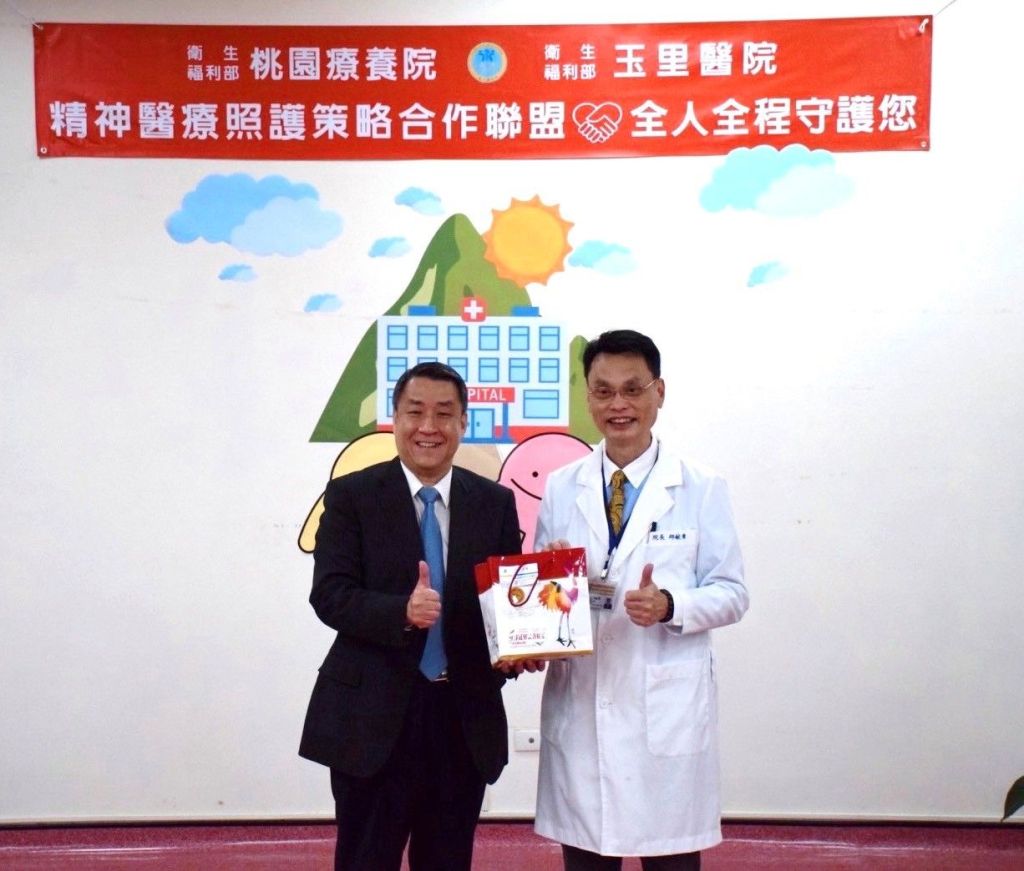 桃園療養院院長邱献章表示,桃療順應地區民眾醫療需求的增加,不斷拓展服務,提升醫療照護品質與量能,然因位於都會區,腹地受限,依照「精神病患照顧體系」六類的權責劃分,桃療能照顧第一類至第四類—需要住院醫療以及社區復健的病人,但對於第五、六類慢性退化、失能、需要長期照護的病人,則需要轉銜至長照機構,而與一般安置機構相比,玉里醫院同時具備專業醫療、多元復健與長期照護能力,並於近年通過衛生福利部獎助佈建長照資源計畫,正逐年設立長照床位中,因此桃療積極強化與玉醫的合作關係,讓長年接受桃療治療照護的病人,多一個獲得全人醫療與整合性照護的選擇,使精神醫療與長期照護服務的銜接更順利,為實現「全人全程整合性醫療照護服務」的願景,落實政府的長照政策更邁進一步。