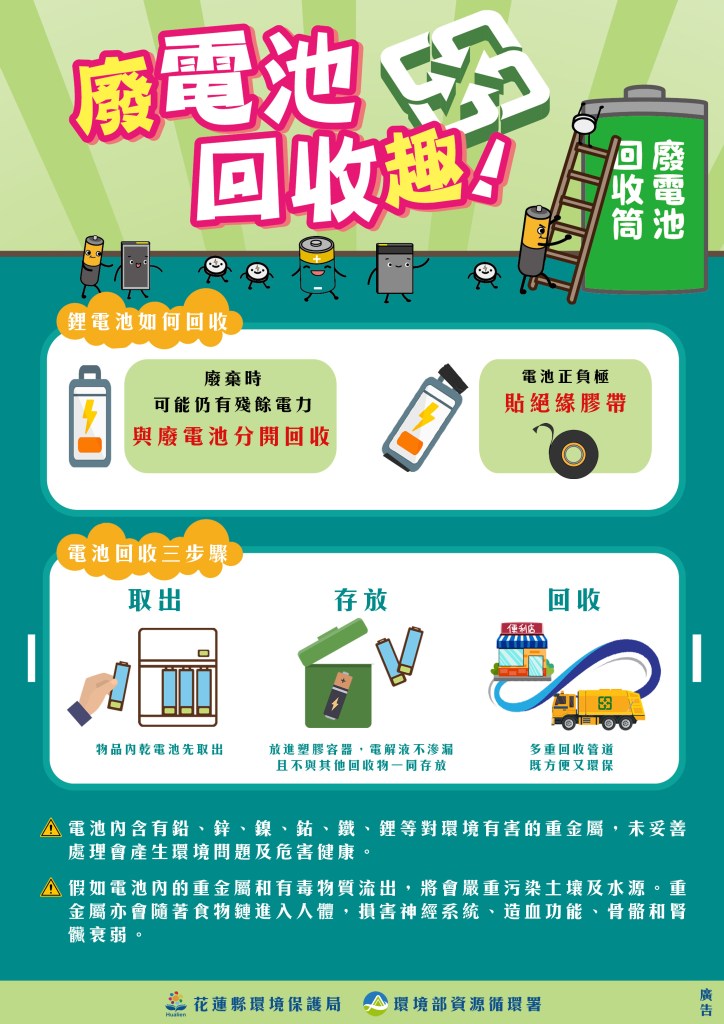縣長徐榛蔚表示,作好垃圾分類不僅可保護環境,亦可確保收運過程及貯存場的作業安全。物品內若有乾電池或鋰電池,請先取出並把乾電池與鋰電池分開存放至不同容器內,再交由指定回收處(量販店、超級市場、連鎖超商或社區村里資收站等)或清潔隊資源回收車隨車人員,避免電池因摩擦、擠壓致危險發生。透過「取出」、「存放」、「回收」三步驟,以便後續回收處理程序、促進資源永續再利用,並確保第ㄧ線清潔人員及民眾的安全。