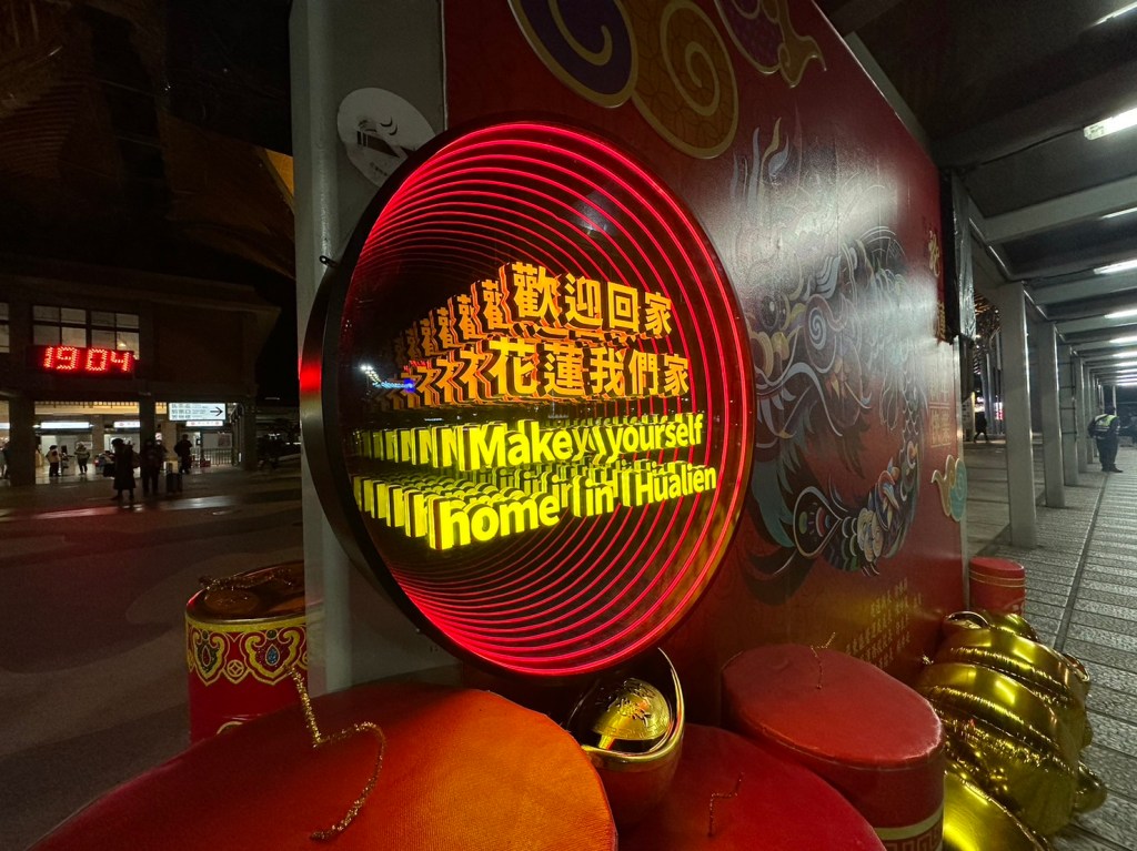 農曆春節即將來到,花蓮縣內店家及觀光業者都已在積極準備迎接遊客;包括太平洋公園南濱段的「2024花蓮太平洋燈會」龍年燈飾,以及遍佈縣內13鄉鎮市主要街道的近兩萬盞大紅燈籠都已掛起準備點燈。至於花蓮火車站前的新春布置今(26)日也已搶先完成,以太平會燈會龍年主視覺為主題的裝飾,加上為春節特製的千層鏡展示「歡迎回花蓮Make yourself home in Hualien」等中英文字樣,用喜氣溫馨的氣氛來迎接國內外遊客及返鄉遊子回到花蓮迎龍年,增添過年熱鬧氣氛,祝福鄉親好運福氣龍總來。