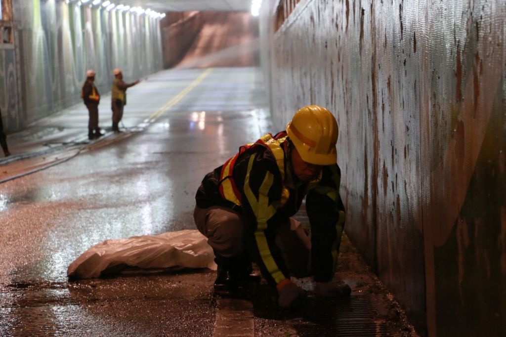 為帶給市民以及觀光客更優質的環境,花蓮市清潔隊自去年12月起,即針對市區公共設施展開清洗作業,繼日前完成北濱外環道清洗作業,26日晚間則在中山地下道執行養護工程。清潔隊動員30名人力、8輛重型車輛,隊長吳慶展也全程在場督導作業進行,隊員抓緊時間陸續完成牆面清洗、兩側邊溝疏濬以及地面清洗作業,最終在27日清晨3點50分提前恢復通行。
