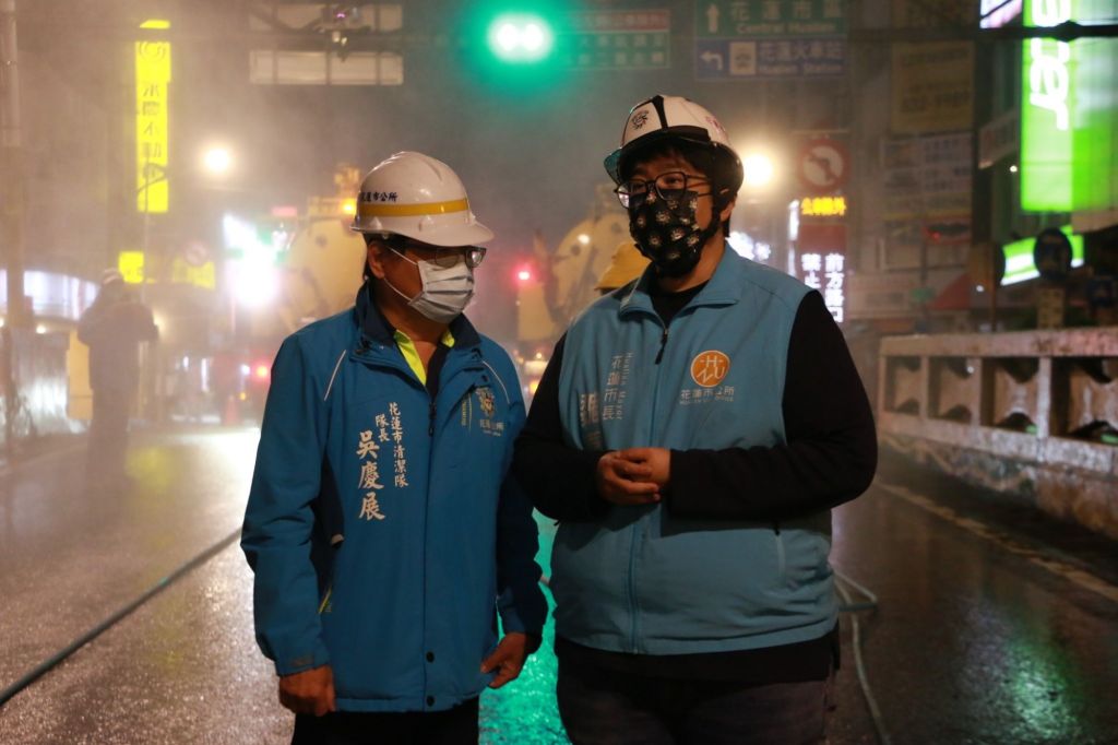 魏嘉彥市長到場關切,並帶來了暖暖的甜湯與鹹粥,要為在寒冷冬夜仍堅守岡位辛勤完成清潔工作的同仁們增添溫暖與能量。魏市長向隊員們表示感謝,也要求大家以安全為優先,他說,由於夜間車流量較少,為將道路封閉造成的影響減至最低,才會選擇在晚上十點至隔日清晨間進行清洗,感謝隊員們犧牲睡眠時間,為花蓮鄉親整理出乾淨、通暢的交通要道。