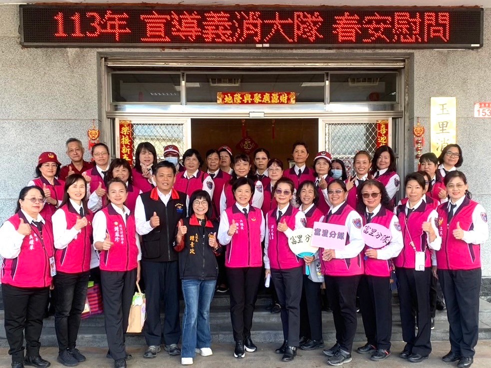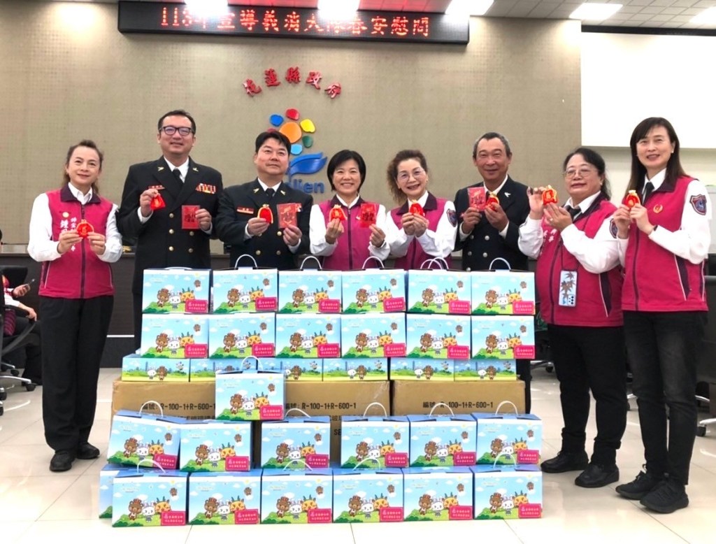 花蓮縣義勇消防總隊宣導義消大隊長游淑貞今(31)日率領大隊幹部,由北至南百餘公里慰問全縣22個宣導分隊姊妹,更貼心致贈春節慰勞禮品,感謝長年來姐妹為十三鄉鎮市、鄰里宣導工作的付出,全程互動熱絡匯聚社會服務情也建立如親人般的情誼。