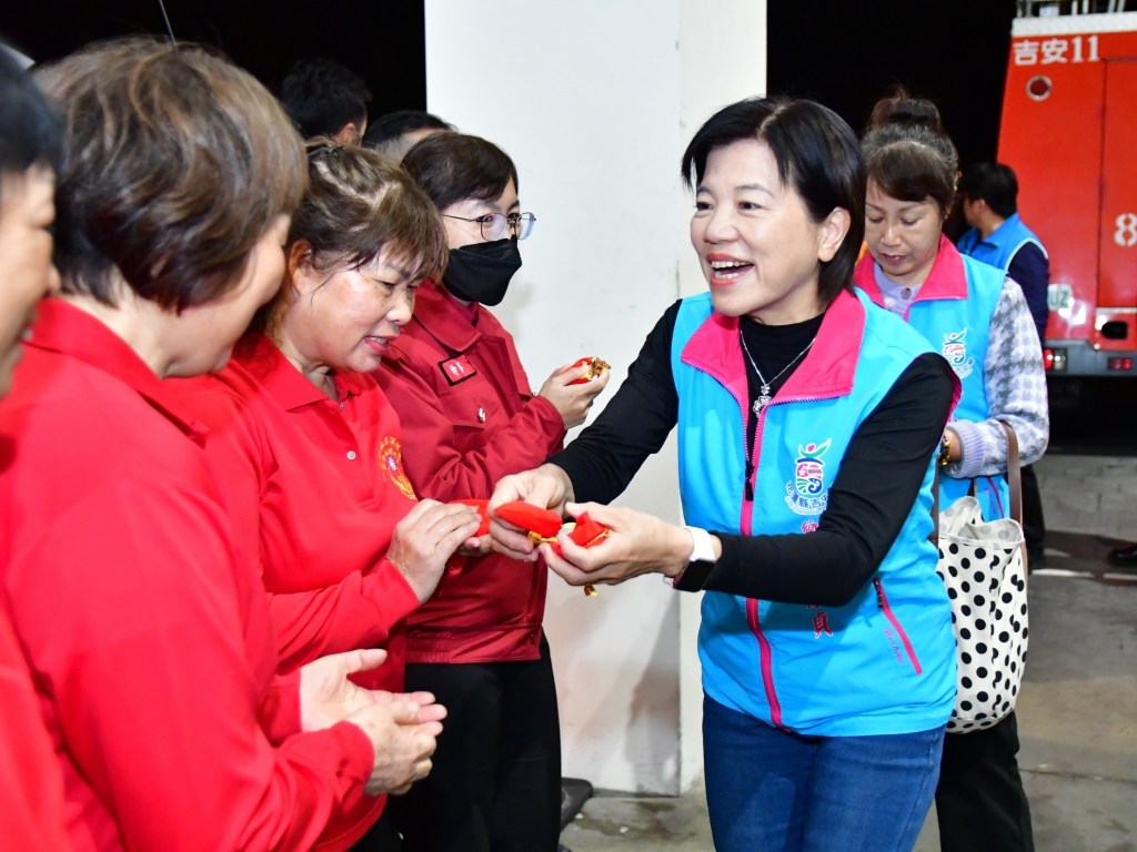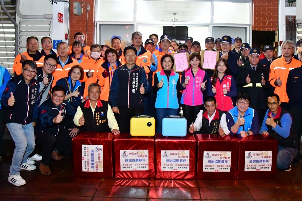 吉安鄉團隊啟動「加強重要節日春節期間安全維護工作」守護鄉親好過年!鄉長游淑貞、主席邱美雲為向鄉內員警、義警、民防、守望相助隊、消防救災、救護、宣導、特搜大隊志工等協勤人員,表達崇高敬意,2月6日夜間偕鄉民代表會、鄉婦女會、吉安鄉農會及村長組成春安慰勤團,發送加菜金與禮敬慰勞品,以感謝協勤民力分工負責、各司其職,守護鄉親快樂過新年。