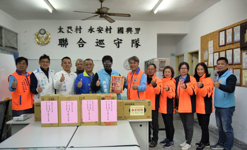 由於編制的關係,太昌巡守隊巡邏勤務區域跨及花蓮市、吉安鄉及秀林鄉,為感謝隊員們付出心力守護花蓮市民,魏市長日前也特地與李振瑋主席、黃達祥副主席前往慰問,送上春聯、慰勞禮金及泡麵,並祝福這些英雄新年快樂、闔家安康。