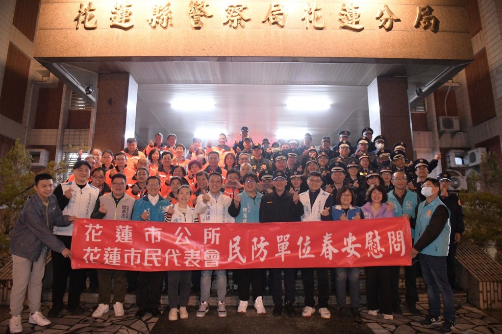 市長魏嘉彥在民政課長潘堂盛的陪同下,前往慰勞警察、消防、民防、巡守、義警、義消、鳳凰志工及婦宣等同仁,感謝他們在年假期間堅守崗位、為民服務,疏通繁忙的交通,並守護花蓮鄉親的安全。花蓮市民代表會主席李振瑋、副主席黃達祥、代表蔡翼陽、江如玲、歐彥志、田珍綺、林百瑞、蕭民隆、陳惠卿等多位代表也到場向春安人員致意。