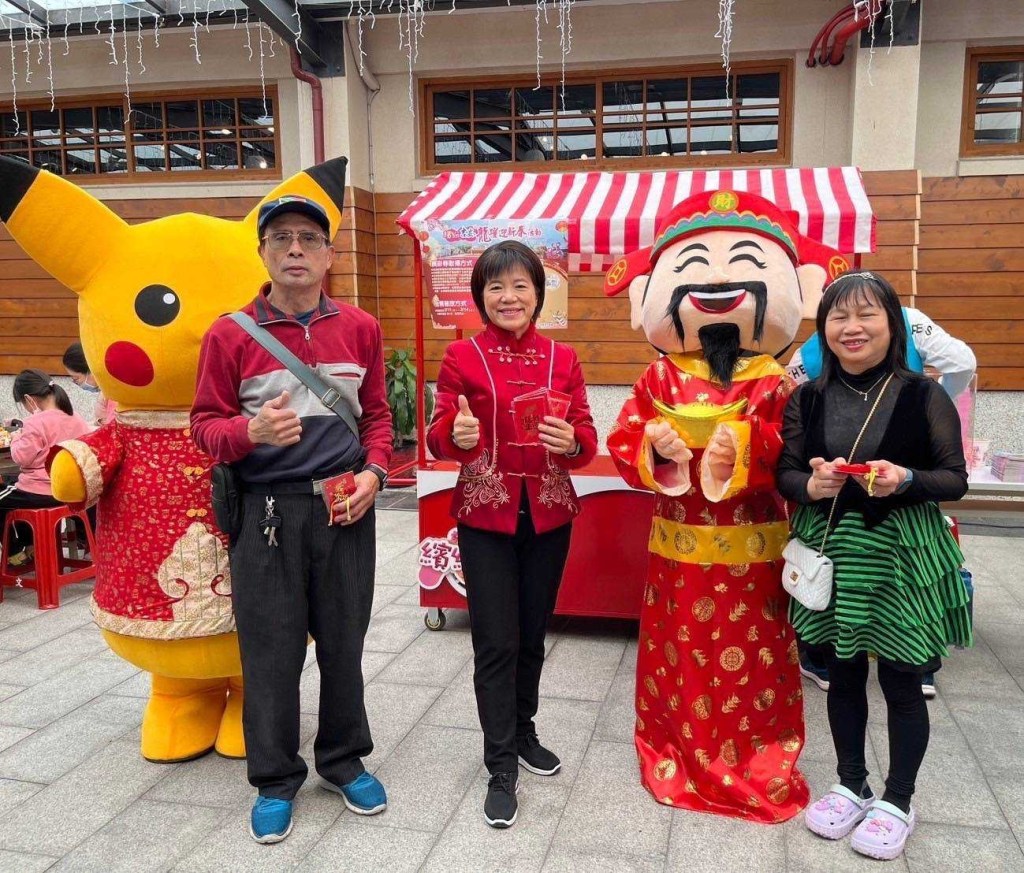 農曆過年連假到吉安走訪,處處都有歡樂節慶氣氛,鄉民代表詹益萬也在大年初二上午到好客藝術村和鄉親拜年,游淑貞除了邀約鄉親把握時間到好客藝術村感受氛圍、排隊領金幣外,也表示感謝文化局挹注能量,和鄉公所合辦親子手作活動,許多家長帶著孩子一起完成「大吉大利」、「平平安安」等充滿吉祥寓意的飾品,帶回家和家人分享、共賞,直到大年初五以前,每天都有2場次開放大小朋友網路線上或現場報名參加。
