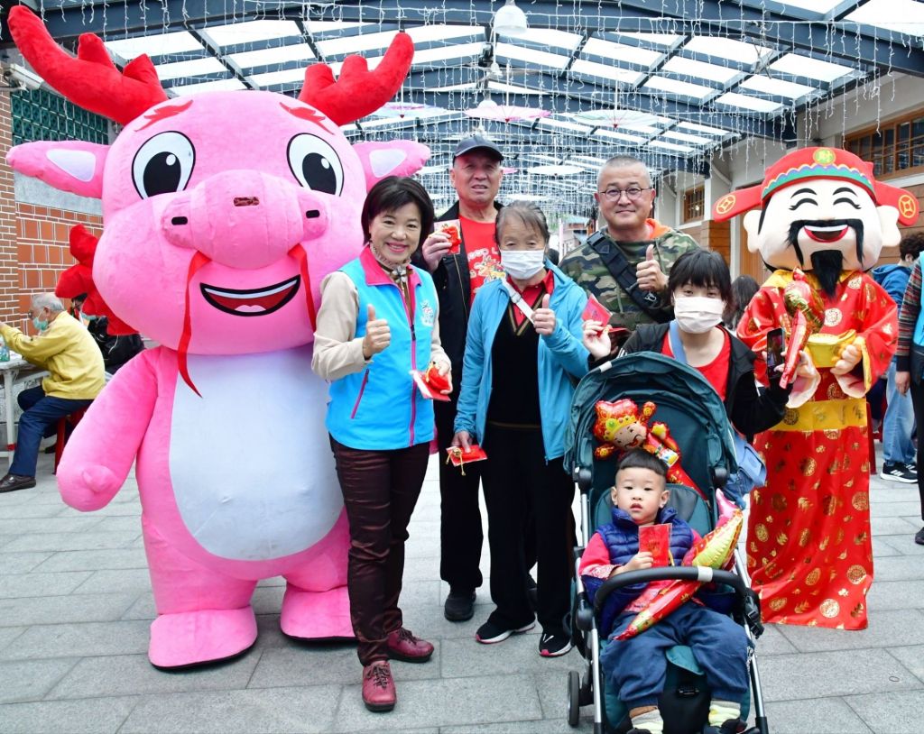 吉安限定版「繽紛吉安 合樂龍龍回娘家」活動,八場次創下過年期間好客藝術村滿滿人潮,鄉長游淑貞親自在現場致贈專屬限量版客製化金龍年金幣,歡迎來自全國各地遊客到訪。她表示很開心看到鄉親們扶老攜幼、多代同堂、三五好友相約到哈囉公園與親子龍主題花燈合影,以及至各景點走春拍照打卡,連續假期間鄉內到處都是滿滿來自全國各地遊客,因此除了原本55寸電視、10台冰箱好禮外,將加碼100份精緻禮送給大家,預計2月24日元宵節上午直播公開抽出幸運中獎民眾,歡迎鎖定吉安鄉公所臉書。