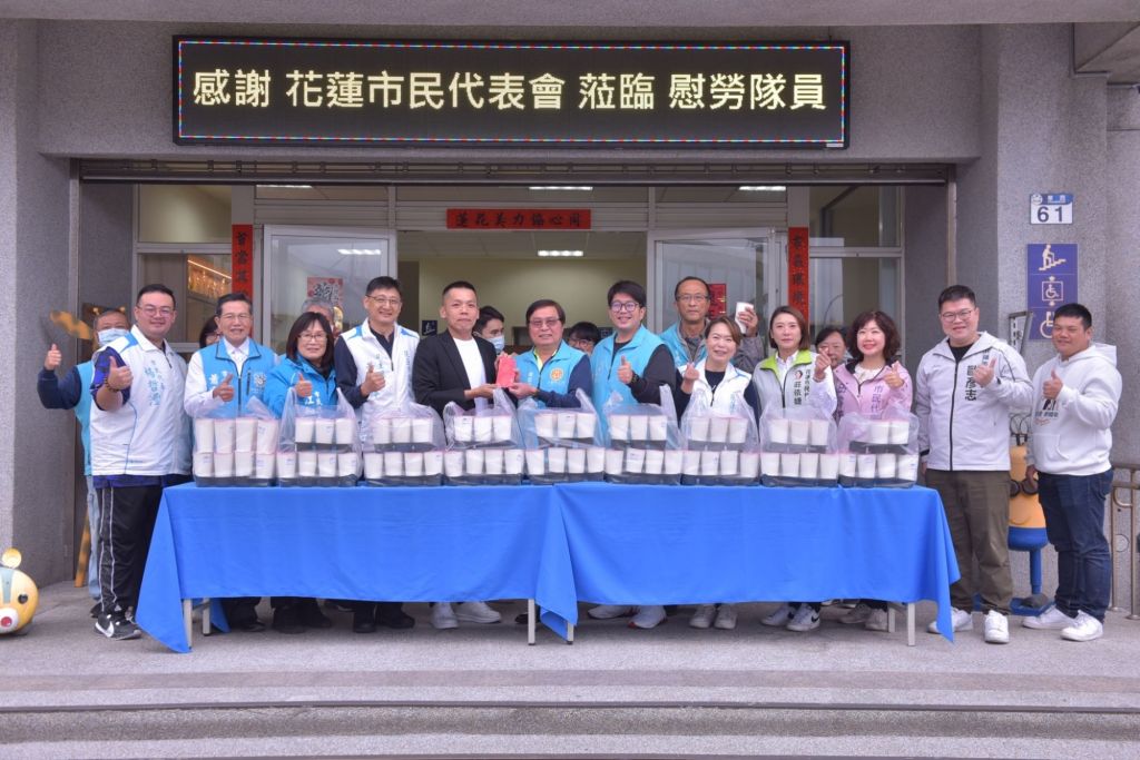 春節連假後的第二個上班日,花蓮市民代表會主席李振瑋率領多位代表,特地前往花蓮市清潔隊頒贈加菜金六千元和150杯手搖杯飲料,慰勞在過年期間仍堅守工作崗位照常清運的清潔隊員。市長魏嘉彥到場代表接受,也回贈感謝狀,感謝李主席和全體代表對隊員們的關懷。