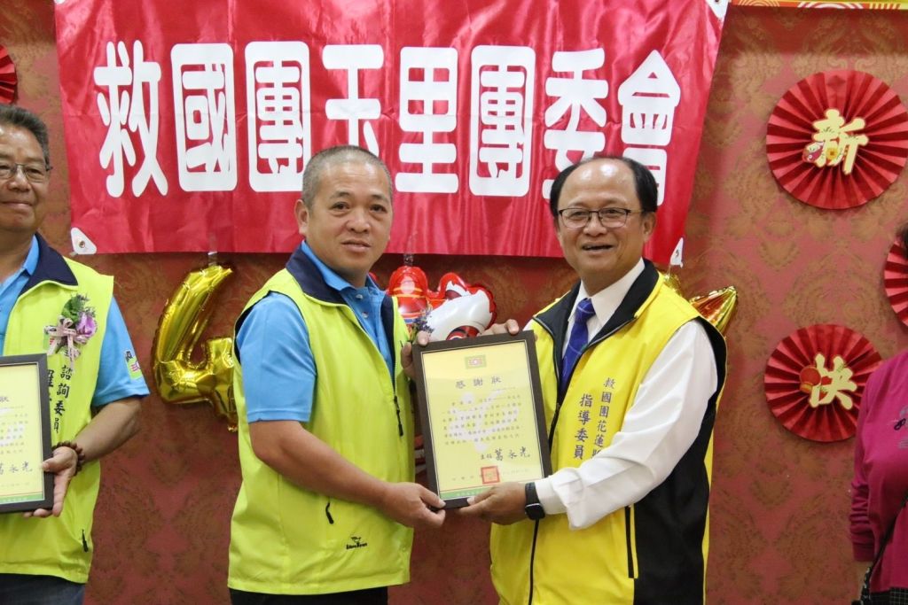 監交人救國團指導委員楊陳榮表示,玉里鎮救國團111~112年在羅會長的帶領下,本著救國團四大志業公益、教育、服務、健康,與玉里鎮公所、玉里鎮代表會、民間社團的公益社團密切合作,聚沙成塔、滴水成河,積極從事地方性的公益服務,辦理許多極具意義的活動:如關懷小農及獨居長者、愛心捐血、義工土風舞研習、認養玉里鎮民廣場綠美化環境掃街全國公益連線活動,深獲地方鎮民的喜愛與肯定。未來,期盼在新任會長曾偉政以及所有夥伴的努力下,將服務觸角拓展至身心障礙、新住民、失智者及單親原住民等弱勢族群,散播愛與關懷的社會正向能量。