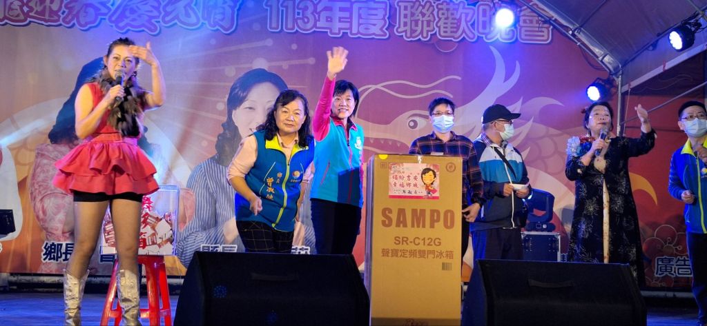 曾淑懿強調,壽豐鄉是全國平地面積最大鄉鎮,同時也是高齡長壽鄉,生育津貼龍年開始,每胎補助2萬元,壽豐鄉親傷害團體保險,原本十五萬元,龍年開始也增加到三十萬元,希望可以幫助遭遇變故的家庭,壽豐鄉各項建設以及社會福利已經啟動,去年颱風為壽豐鄉帶來土石流災情,幸好天佑壽豐,鄉公所團隊上緊發條,鄉內重大災修、復建工程都已展開;感謝縣長徐榛蔚;立委傅崐萁、各縣議員、鄉民代表以及地方仕紳、企業、機關團體、社團支持鄉公所建設與施政,並提供各項摸彩品,讓鄉親在元宵晚會中把大獎帶回家。