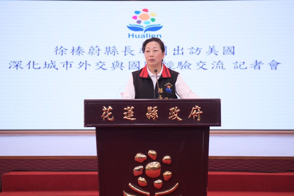 花蓮縣長徐榛蔚於今22日率團,包含花蓮縣政府團隊以及海星高中、化仁國中、鑄強國小等三所學校的校長及師生,啟程前往美國加州,進行為期8天的城市交流之旅,昨(21)日於縣府大禮堂舉行行前記者會,此行安排豐富,包括受邀參加姊妹城市天普市(Temple City)於2月23日至25日舉辦的年度盛事「山茶花節」及拜訪美國加州聖蓋博市(San Gabriel)。