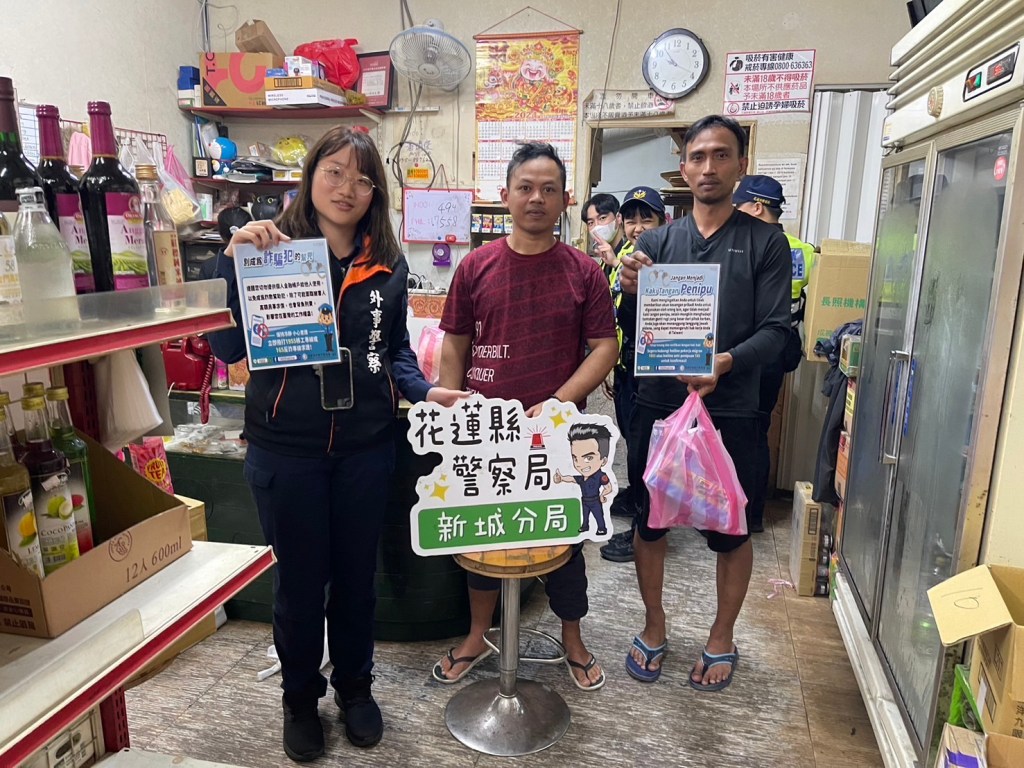 假投資、假網拍、假交友、中獎通知等詐騙手法層出不窮,新城警分局有鑑於轄內有百萬財損詐欺案發生,其中發現被害人匯款帳號多為外籍移工之金融帳戶,近來詐騙集團有利用外籍移工來臺工作期限屆滿返國前,藉機向移工收購金融帳戶,造成移工一返國就成了人頭帳戶而涉案;為維護轄內移工朋友「知」的權利,避免移工遭遇淪為詐欺幫助犯的無妄之災,新城警分局嘉里派出所所長劉祐辰率所內同仁及第三組外事警察陳奕涵持宣導文宣至外籍人士易聚集場所,向轄內移工解釋內容,並請店家協助張貼文宣,以免移工朋友受騙上當。