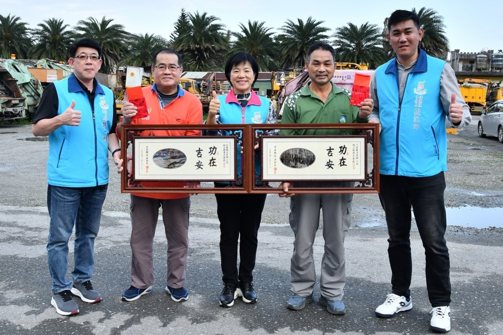 花蓮縣潔淨家園評比第一名的吉安鄉,因為有著負責認真、辛苦盡職的清潔隊員群,協助全鄉進行各項環境清潔維護工作,鄉長游淑貞3月12日親往清潔隊致贈「功在吉安」謝匾給趙世雄、鄧兆強等兩位資深即將退休的隊員,感謝他們用青春勞力和隊部弟兄們無畏風吹日曬雨淋為鄉鄰潔淨打拚,清潔隊大家庭依依不捨,集眾資添購金戒指相贈,盼情誼永存、睹物思情,永遠留存汗水情誼。