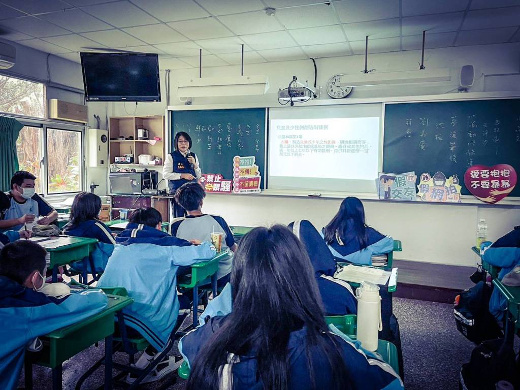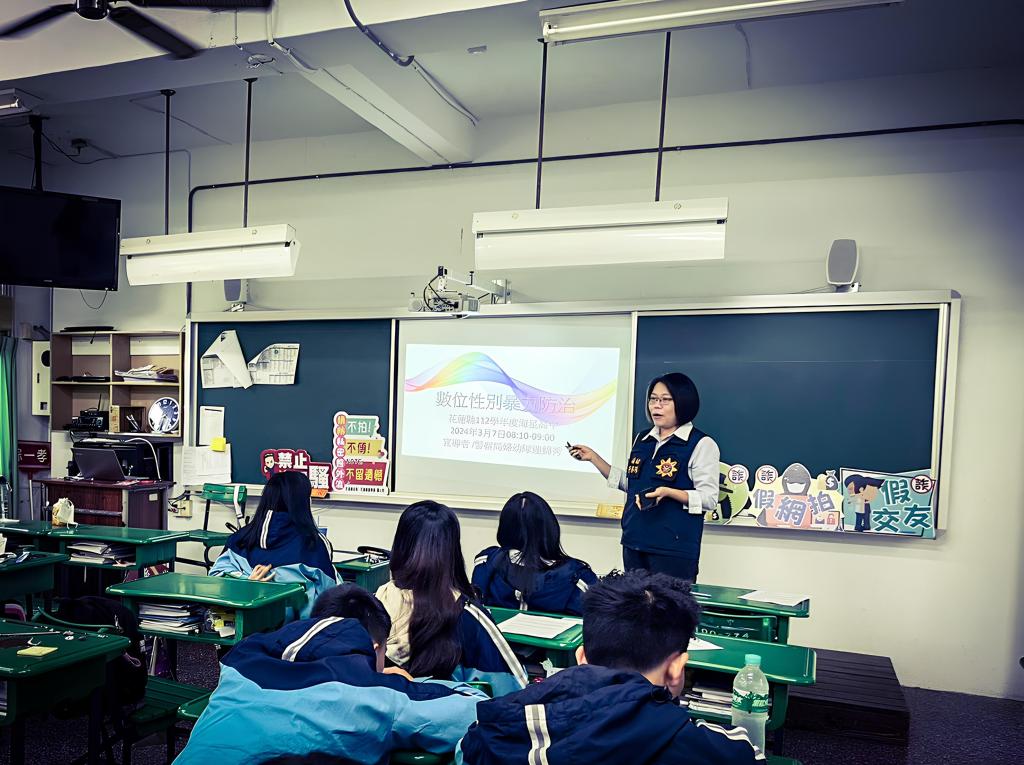 花蓮縣警察局為提醒青少年朋友有關網路使用安全,透過各種深入淺出的宣導影片,帶領學生認識兒少性剝削防制條例及自我身體保護等觀念,婦幼警察隊在3月7、8日二天,前往海星高中3個班級進行宣導,提升宣導效能。