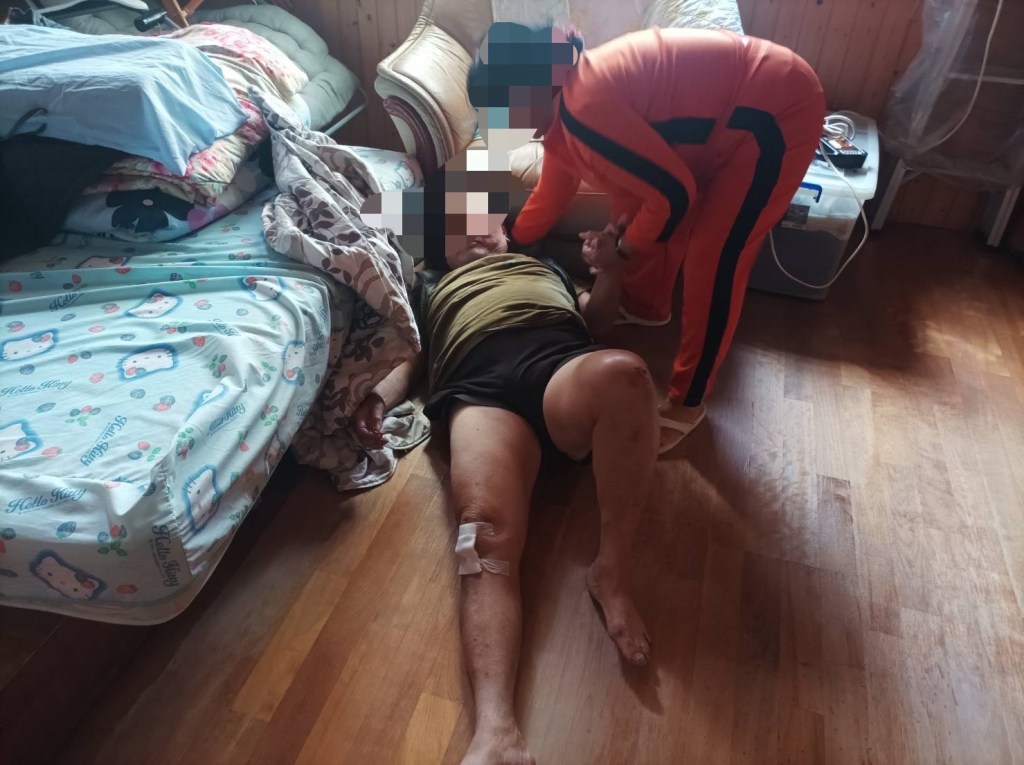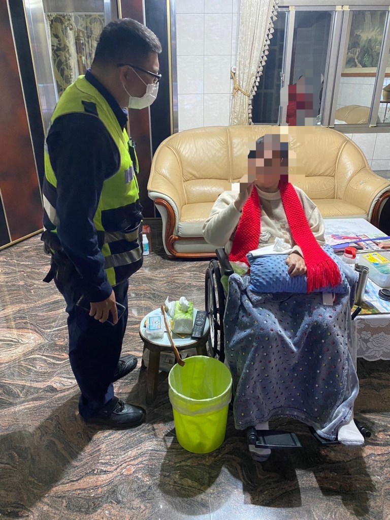 斗南警分局四維建國派出所員警11日接獲民眾電話報案,稱其夫倒地卻無力扶起,希望警方協助。經警員詹達茂到場瞭解,沈姓報案人因行動不便坐於輪椅上,向警方表示稱其80多歲的丈夫疑雙腿無力跌倒在地上,外籍看護更稱從昨晚至今阿公已經摔倒6次,因阿公體重達上百公斤,她已完全沒有體力將阿公再度扶起,報案人自己又雙腿不便因此去電派出所請求警方協助。