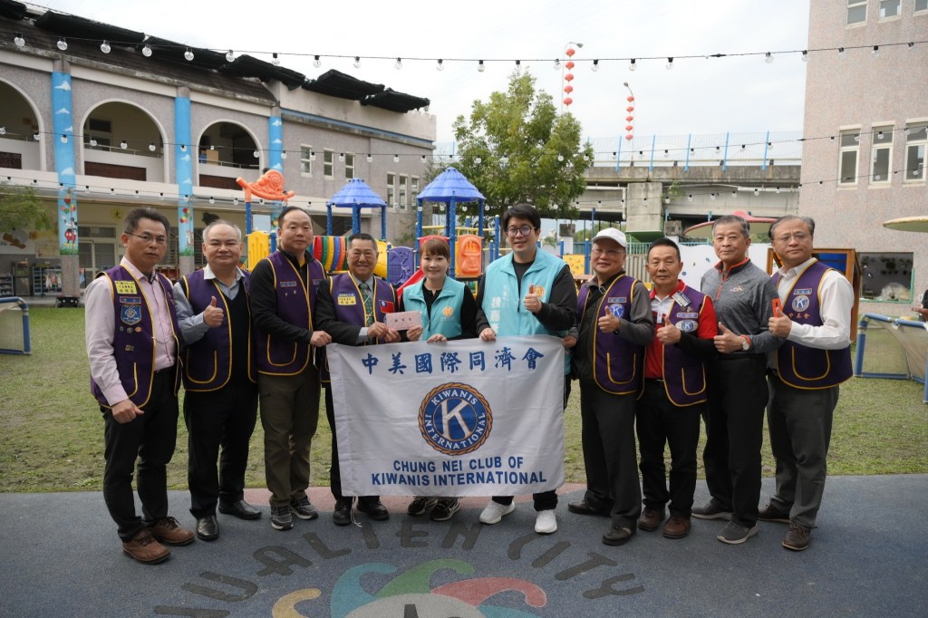 捐贈儀式與會貴賓包括來自臺中市的中美國際同濟會會長周盛雄、創會長巫國裕、社服主委鍾耀祥、財務長陳同一、前會長江瑞昌、廖增華、林秋金,市幼前家長會長暨花蓮縣北濱愛踢球協會會長楊曜睿以及教練林驍城等人。