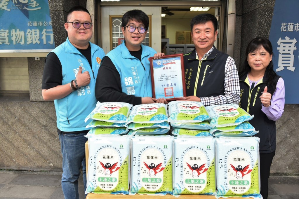 花蓮市農會慷慨送暖,近日由理事長陳保成、總幹事蔣淑惠代表捐贈200公斤白米予花蓮市實物銀行,市長魏嘉彥代表接受,並致贈感謝狀,感謝社會各界的愛心,持續充盈實物銀行的物資量能,期盼有更多民眾響應捐贈,給予弱勢族群支援與溫情。