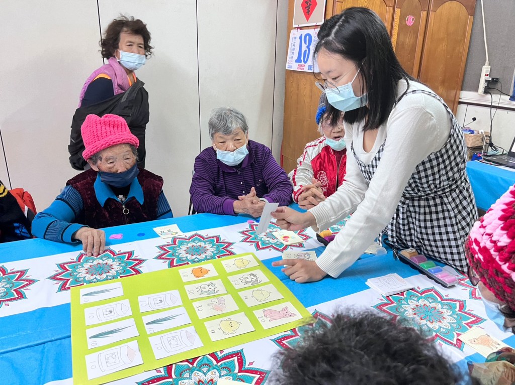 本月14日在大禹失智據點的活動中,臺北榮民總醫院玉里分院王郁文臨床心理師透過暖身活動協助長輩活動身體。她運用尼龍繩與氣球,讓長輩們倆倆控制同一條繩子,須適時拉緊繩子與調整繩子位置,得以達到活動上肢的效果。課程重點則以「動物農場」桌遊為活動主題,讓長輩透過購買動物及飼料牌卡,進行算術及配對的練習,另外,每張卡牌賣出價格皆不同,有部分長輩在玩過幾輪後可依靠記憶力挑選利潤較高的動物卡牌,並從中獲得成就感。整體而言,社區長輩們活動投入度高、反應熱烈,藉由桌遊活動創造輕鬆有趣的氛圍,以訓練長輩認知功能。