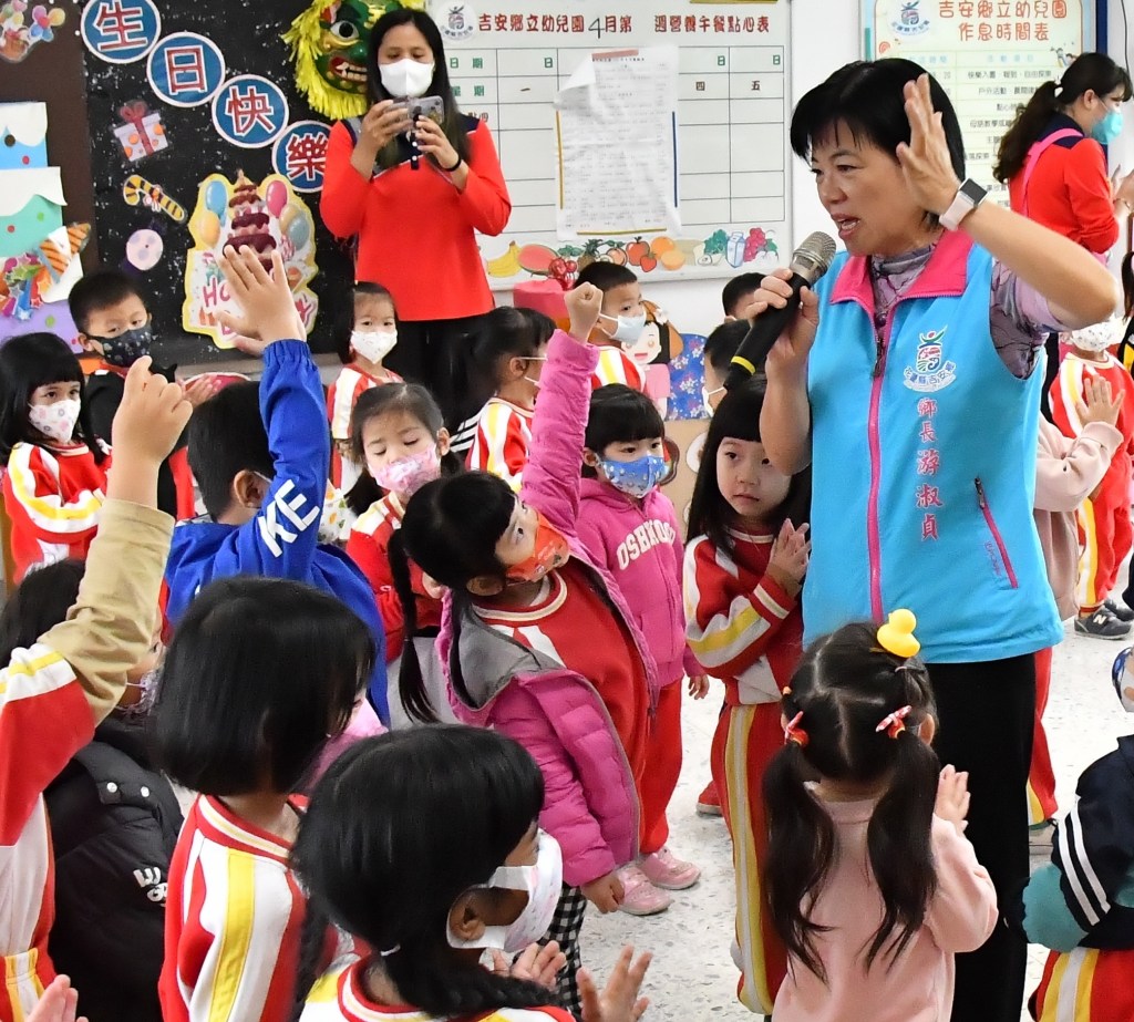 0403大地震震撼全台,吉安鄉立幼兒園原排定發送兒童節禮物及教學活動因停班停課…延後至今(4月9日)由「鄉長阿姨」游淑貞在馬不停蹄的災後應變行程之餘,親往發送驚嚇後的小確幸,帶來早已準備好的禮物以安撫百餘位受到驚嚇的小小心靈,同時提醒小寶貝們勇敢機智面對每一個餘震來襲,更需具備防震知識以保護自身安全,而且更要帶回正確的學校教育回家分享給家人,近期要避免到危樓周邊或受災地區逗留,不僅避免發生危險,最重要的是讓救災及相關工作人員能盡速完成災後重建任務,小朋友們紛紛向「鄉長阿姨」承諾使命必達!