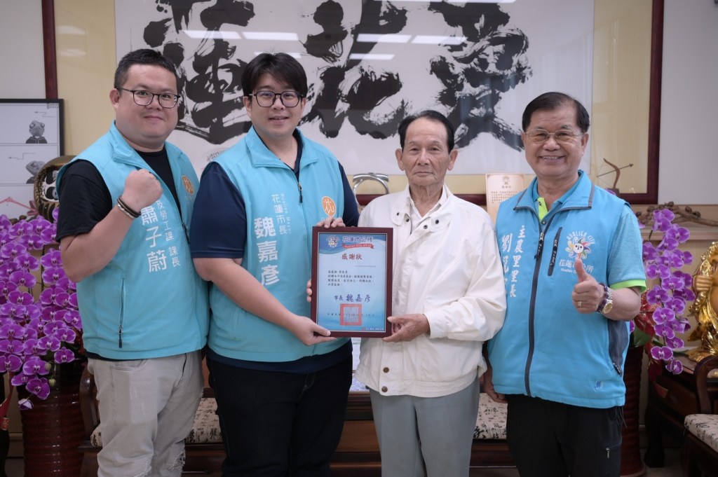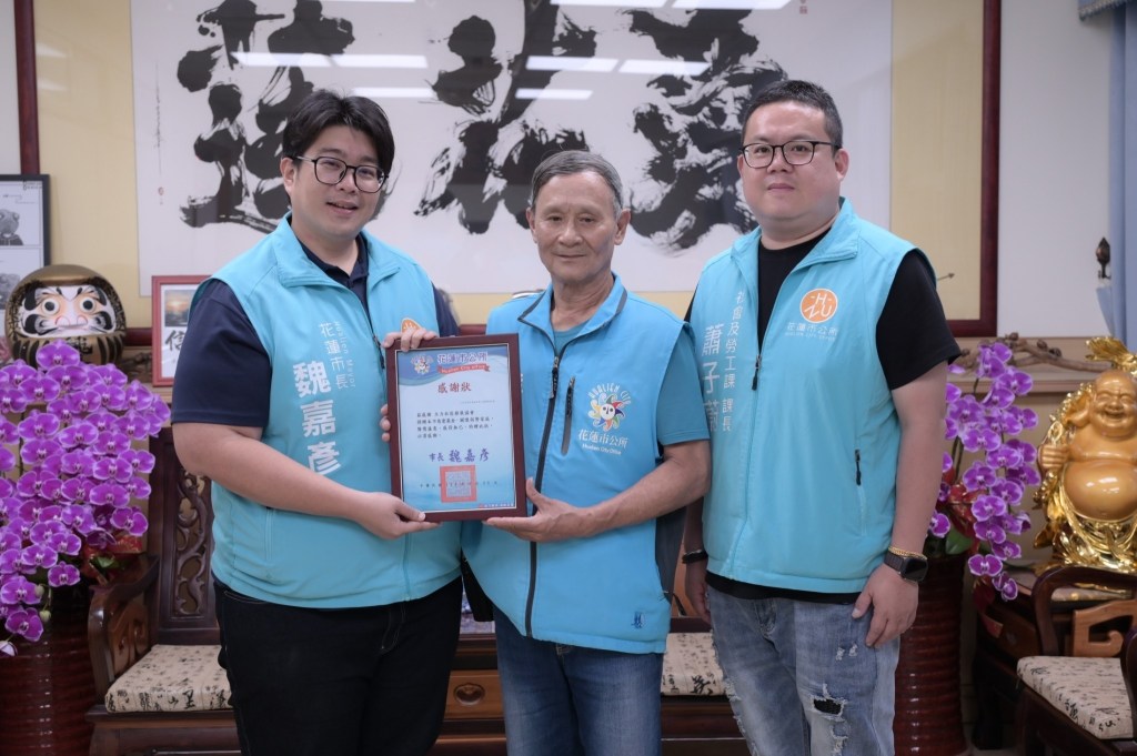 花蓮市慈愛基金長期以來備受各界青睞,但凡希望幫助弱勢族群、急難救助等善心大眾,都會透過花蓮市公所捐贈愛心。自花蓮發生0403大地震以來,有許多人更加擔心這些弱勢族群的生活變得雪上加霜,並陸續向市公所聯繫,希望用實質的行動幫助需要協助的人。市長魏嘉彥感謝各界的慷慨解囊,並逐一頒贈感謝狀給這些善心人士,感謝大眾共同實踐「愛花蓮」的精神。