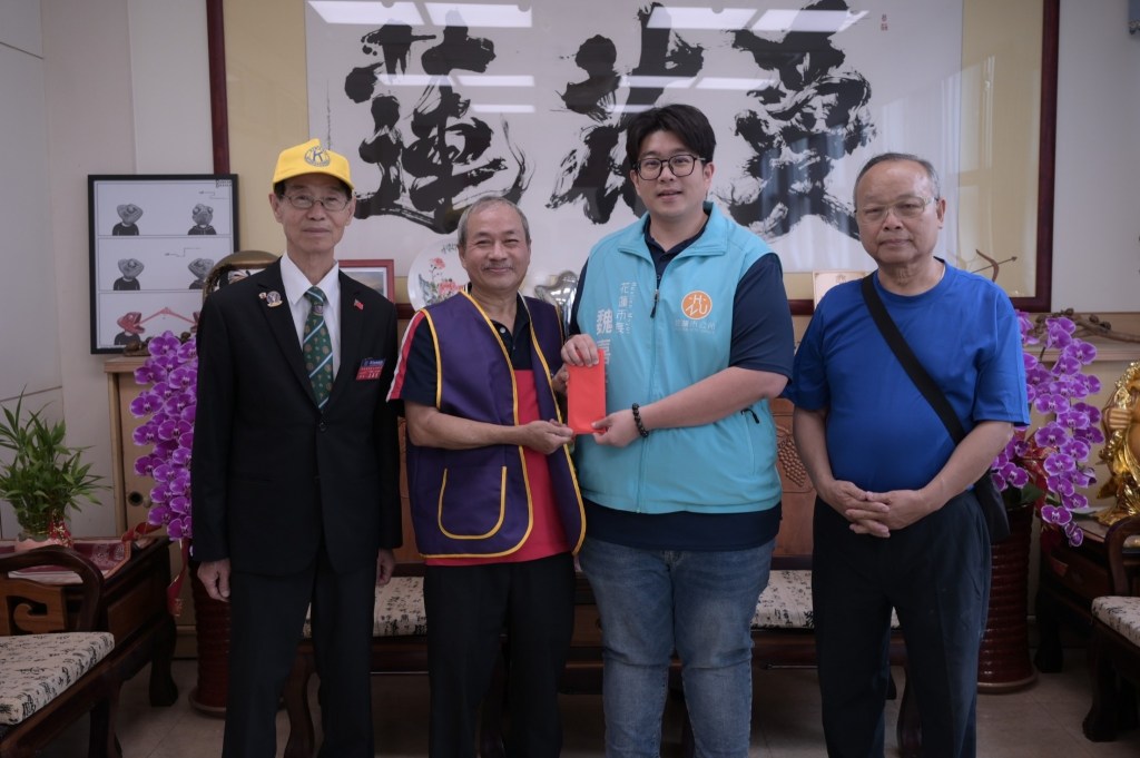 來自桃園內壢的藍金財先生,同時也是大內壢同濟會會長,在國際同濟會台灣總會花東區區主席寶達民、首席教育政策代表會(花蓮會)黃啓源及因0403地震塌陷的北濱街早餐店老闆吳永和陪同下,以金立盛螺絲廠的名義,捐贈慈愛基金5萬元,希望遠從桃園親自帶來的愛心,能幫助到花蓮的民眾,讓他們感到不孤單。