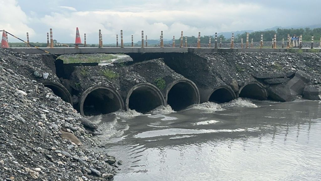 受鋒面影響,連日雨勢造成秀姑巒溪水位上升,導致高寮便道東側已被掏空,目前玉里鎮公所今(7)日清晨暫時封閉通行,等廠商處理好後再開放通行。