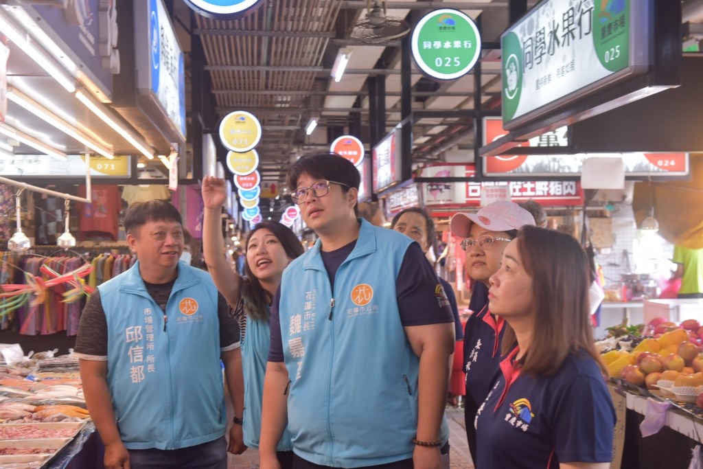 為了提升重慶市場攤位標示及未來爭取提升市場優良市集星等,花蓮市公所於112 年編列 900 萬元預算,進行規劃設計製作市場內 273 攤攤商的橫向招牌及小圓招牌,同時為了增強招牌可視性及市場照明,這些招牌皆設計為「燈箱」招牌,並定時於營業期間開啟;另外為了維持市場內的整潔跟地面的乾燥,該工程另外設置集水槽,一併改善自來水管漏水及冷凝結的滴水問題。