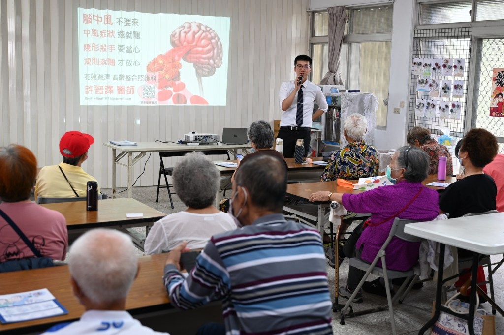 民意(大陳)社區福氣站舉辦健康講座,日前邀請慈濟醫院高齡整合照護科的許晉譯醫師進行宣導,藉此提高社區居民對中風的認識,並強調早期發現和預防的重要性。花蓮市長魏嘉彥也到現場聆聽,並頒發感謝狀,感謝許醫師長期走進社區及福氣站,提供社區長輩們多面向的健康相關資訊。