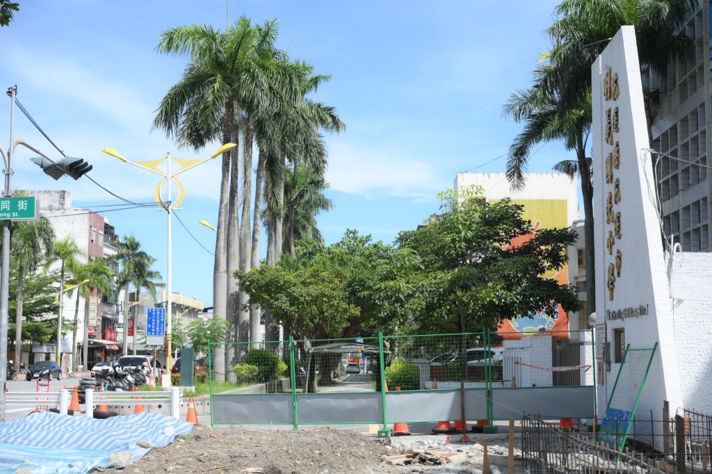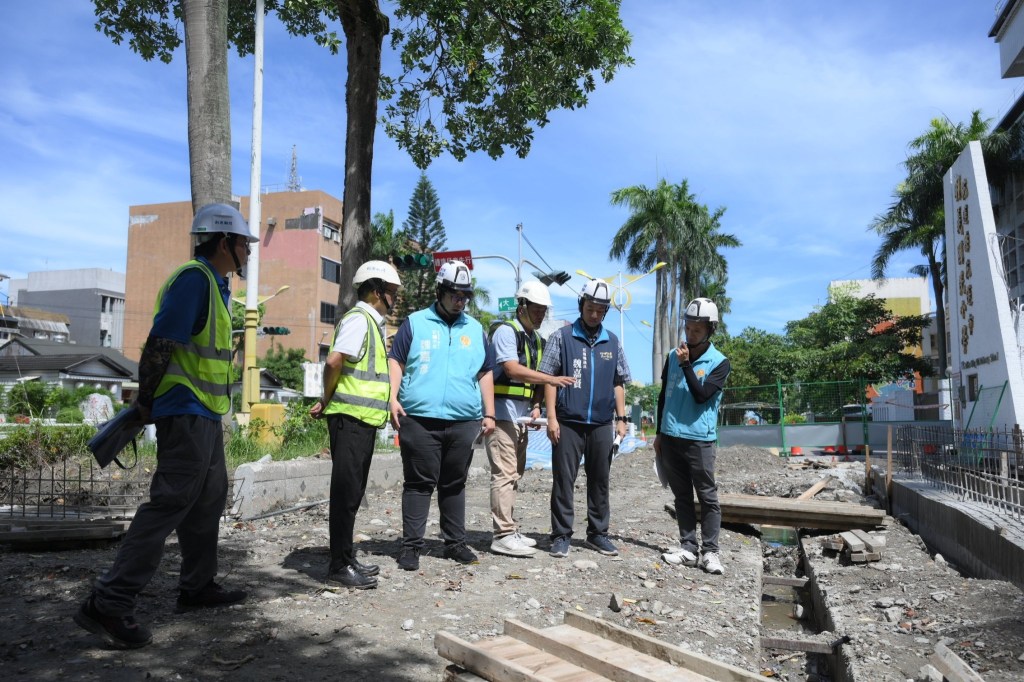 魏嘉彥視察工程進度,也特別關心許多民眾關注的行道樹議題。考量大王椰子樹歷年來不時發生落葉險砸傷路人、車輛的事件,還有黑板樹浮根、易折等問題,經諮詢環保相關單位意見,將保留大部分路樹,僅移除植栽槽內影響安全動線的部分路樹,來打造無障礙人行空間,進而擴大人行道路口,增加停等區域,也縮短行穿線的距離。