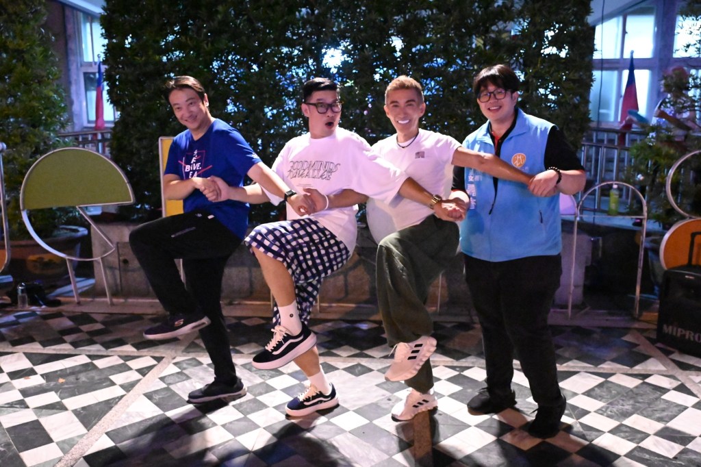 魏嘉彥市長今天晚間再到廣場前慰勞大家的辛勞,並帶來密秘嘉賓-有氧天王潘若迪及馬力歐,兩人一現身,讓部落姊妹們歡呼雀躍,場面十分歡樂。在教練的指導下,魏市長、潘若迪、馬力歐、議員魏嘉賢、李正文一起學習大會舞,感受原住民族樂舞及熱情。