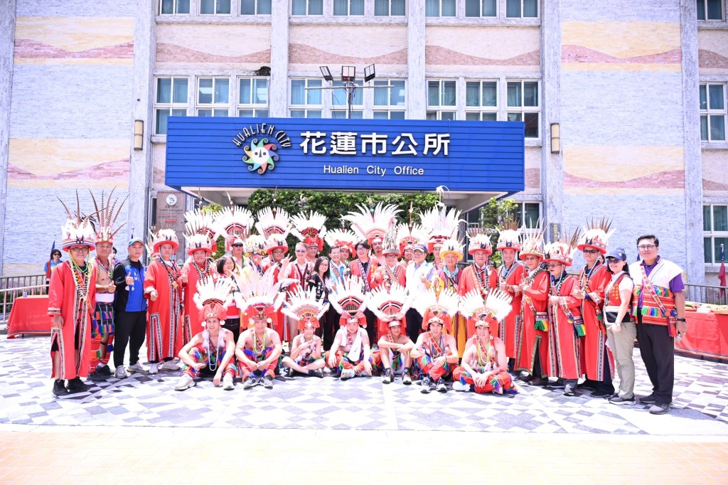 花蓮市13場部落豐年祭暨感恩祭將在7月27日陸續登場,今天由花蓮市頭目聯誼會長楊宗寰頭目率領部落頭目及青年階級勇士前來市公所前廣場報信息,正式宣告一年一度的豐年祭即將展開,並熱情邀請市長魏嘉彥及市民朋友一同參與部落盛事。