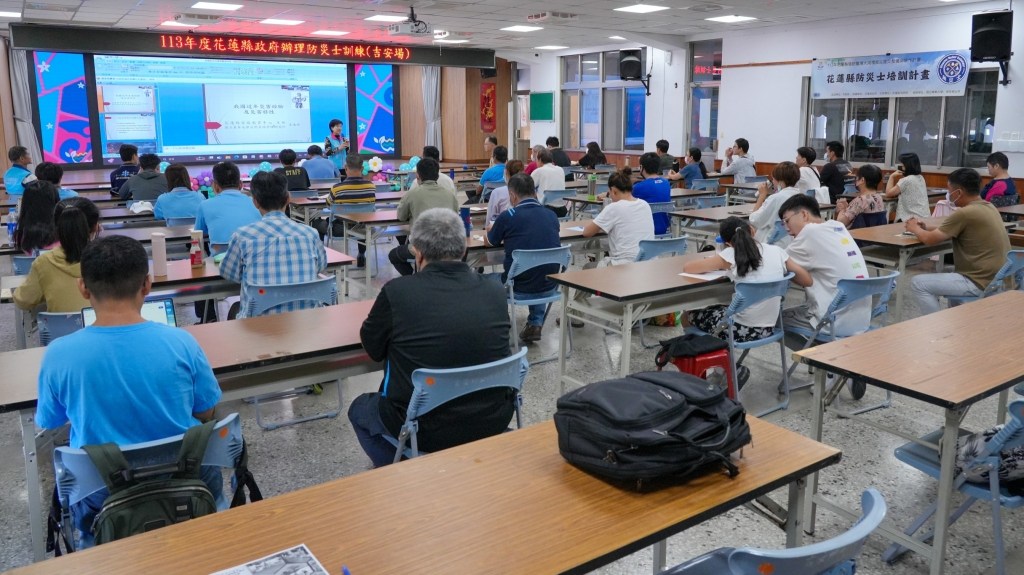 吉安鄉公所為加強災害整備及災害防救深耕計畫,特別與花蓮縣消防局配合,辦理「113年花蓮縣強韌台灣大規模風災賑災整備與協作計畫」防災士培訓課程,今天在鄉公所親民堂開訓,無分鄉鎮市、或職業類別,匯聚五十位學員接受札實訓練,未來將承擔社區韌性推廣重責,增強各領域防救災整備量能。