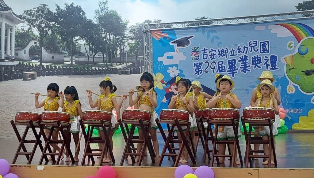 吉安鄉立幼兒園於14日辦理第29屆畢業典禮,為39名畢業生精心安排一系列精彩的表演活動,讓小小孩用多語言學習的精采致畢業感恩詞,並在舞台上展現十八般舞藝成果,也由鄉長媽媽游淑貞親頒贈畢業證書、縣長徐榛蔚頒發縣長獎、立委傅崐萁頒贈勤學獎,主席邱美雲、副主席黃金發及多位代表貴賓們皆出席與會,共同慶賀孩子們迎接人生的第一個畢業典禮。