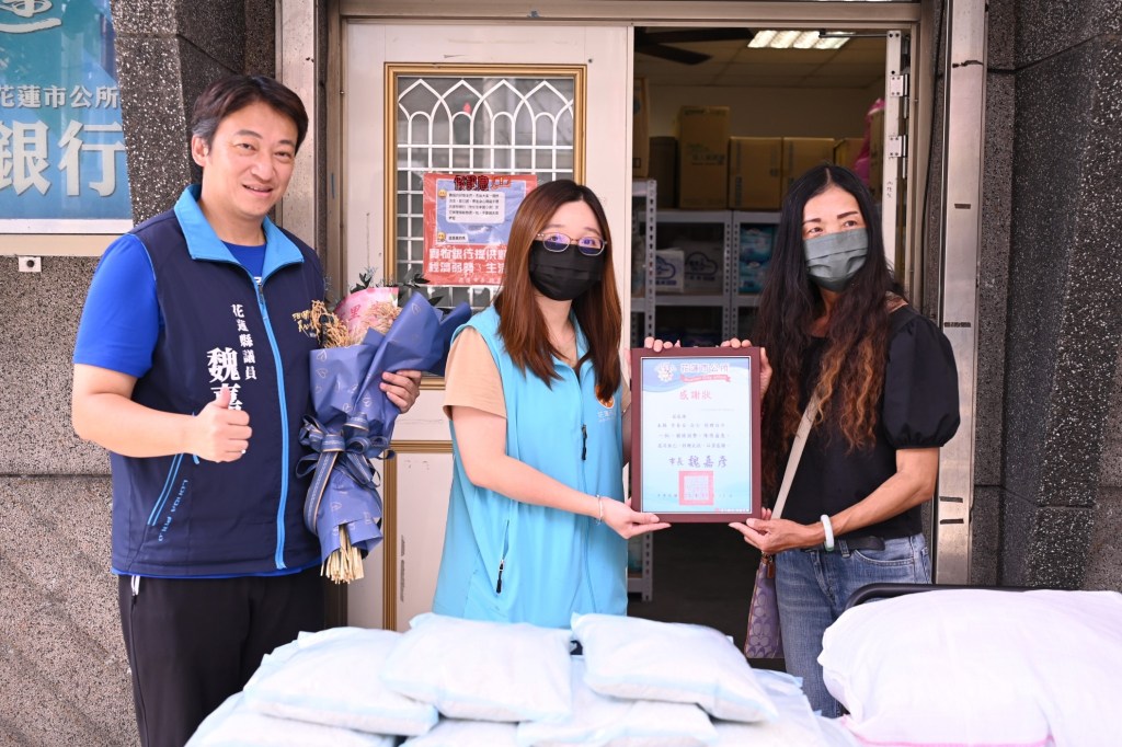 在捐贈儀式中,由花蓮市公所設勞課田介軫代表接受捐贈並頒贈感謝狀,花蓮縣議員魏嘉賢也到場表達感謝之意,李春女同時贈送給魏嘉賢議員一束由稻穗組成的花束,象徵著豐收與感恩。