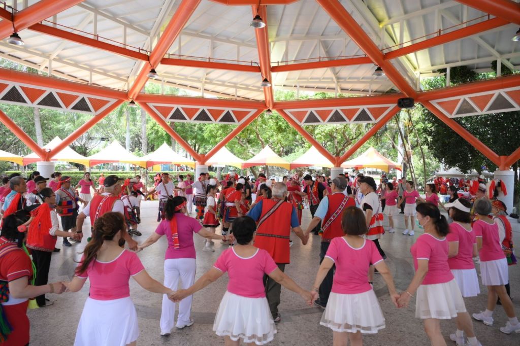 除傳統舞蹈外,活動的最高潮,則由全體族人、貴賓以及遊客圍成大圓圈,一起跳歷年豐年節活動大會舞,體驗豐年祭的文化特色。