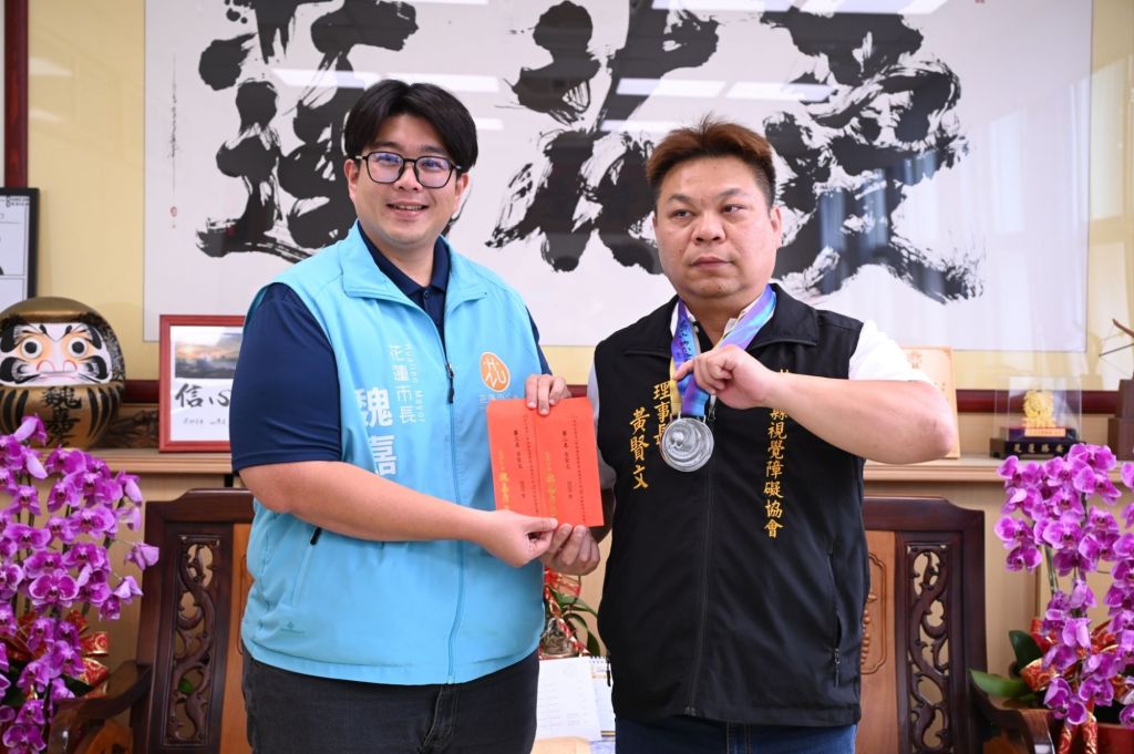 全中運今年四月在花蓮舉辦,設籍花蓮市獲獎學生來自海星高中、花崗國中、自強國中、及國風國中,市公所頒發獎勵金從8千元至4千元不等;另外黃賢文參加今年5月25日在南投舉辦的全國身心障礙運動會,榮獲視障男子組TB2保齡球個人賽及個人全項,分別拿下第二、三名,市公所頒發兩筆獎金共1萬元。