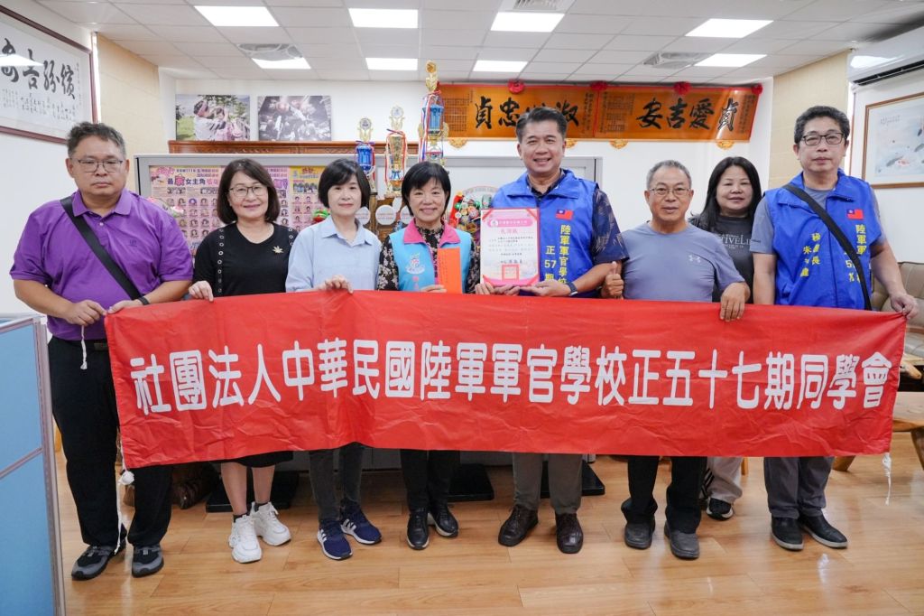 陸軍官校培育無數優秀軍人竭盡心力保家衛國,社團法人中華民國陸軍官校正57期同學會成員們,卸下軍職後仍積極服務社會。日前由韓豫平理事長偕秘書長等人,攜手在地溫馨家族,分別捐款肆萬、伍萬元共計玖萬元整,透過游淑貞鄉長統籌挹注鄉內仁愛基金,續未來幫助弱勢家戶救助關懷。