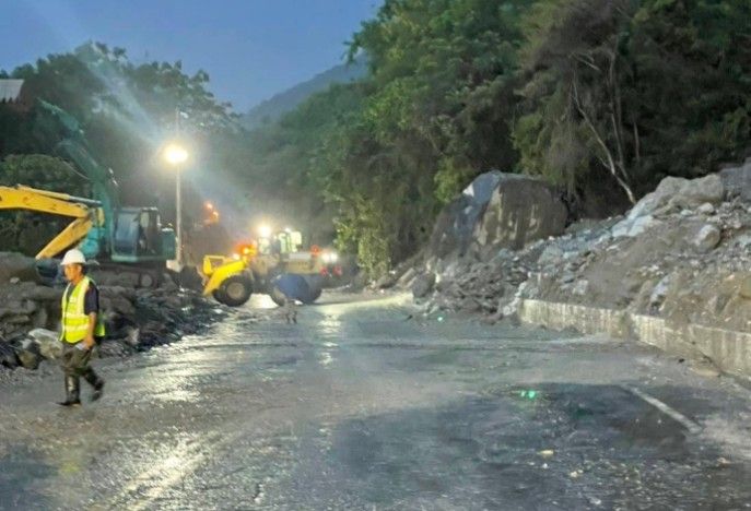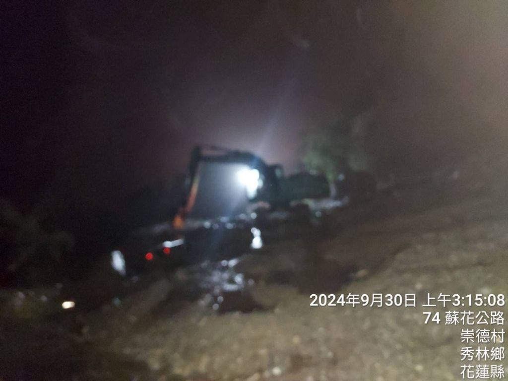 台9線164.5k崇德路段發生土石流,公路局東區養護工程分局南澳工務段考量用路人行車安全,台9線和仁(154.8k)~崇德(165.7k)自今(30)日2時25分起只出不進,搶災機具現場清理警戒中,預定4時搶通單線開放通行。